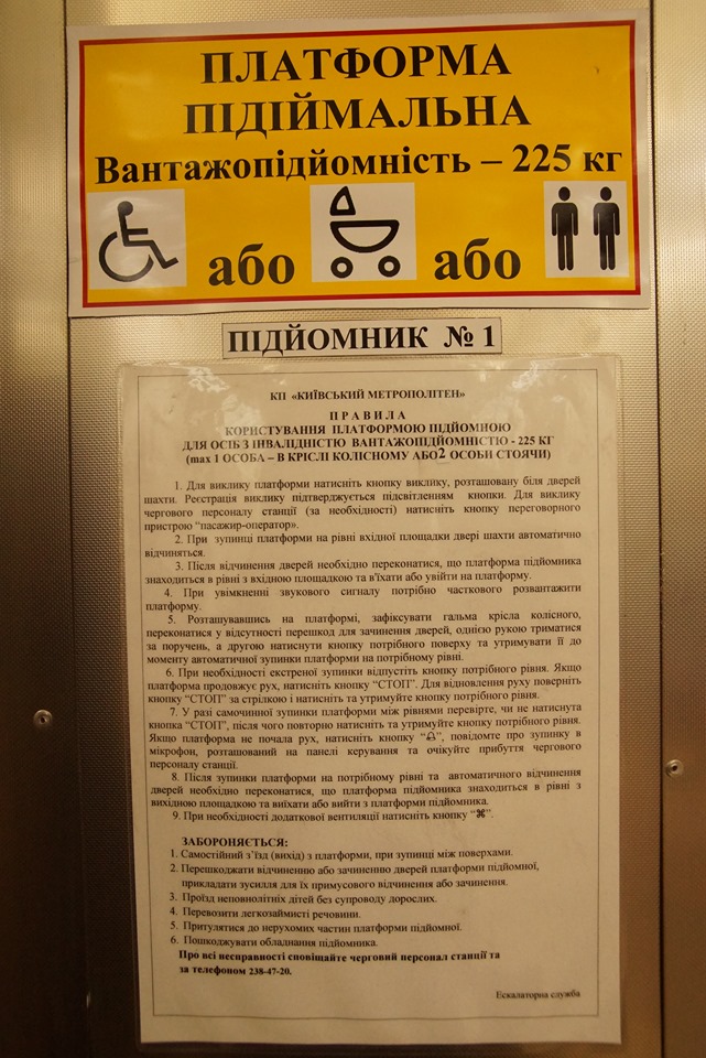 Піктограми на платформі позначають, що зайти до підйомної платформи можуть лише двоє людей, але сам вказівник малозрозумілий.
