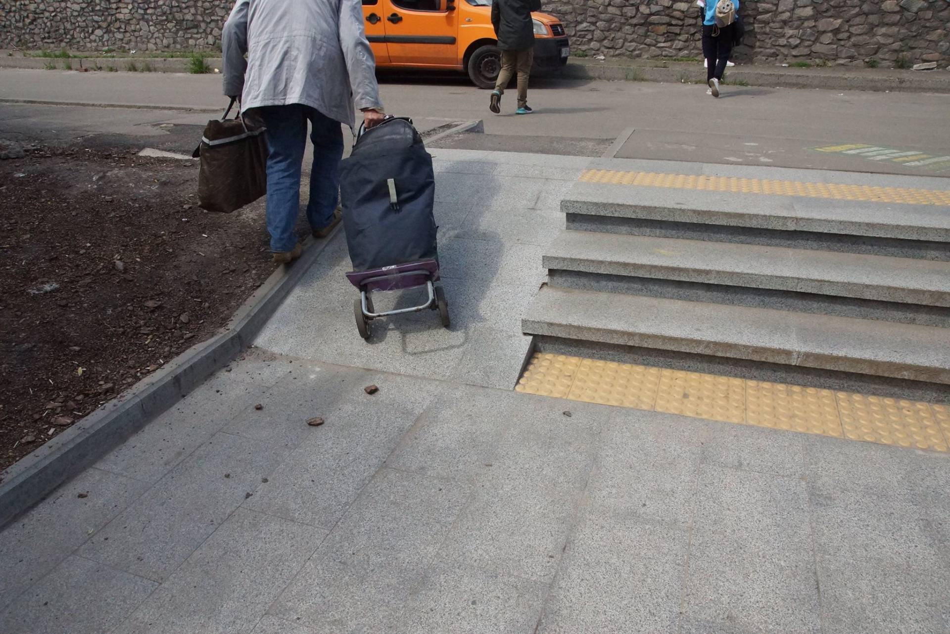 Також до входу в ліфт прибудованно три поріжки заввишки шість сантиметрів. Дослідниці рекомендують понизити його на два сантиметри чи додати приставний пандус або випадаючий поріжок.