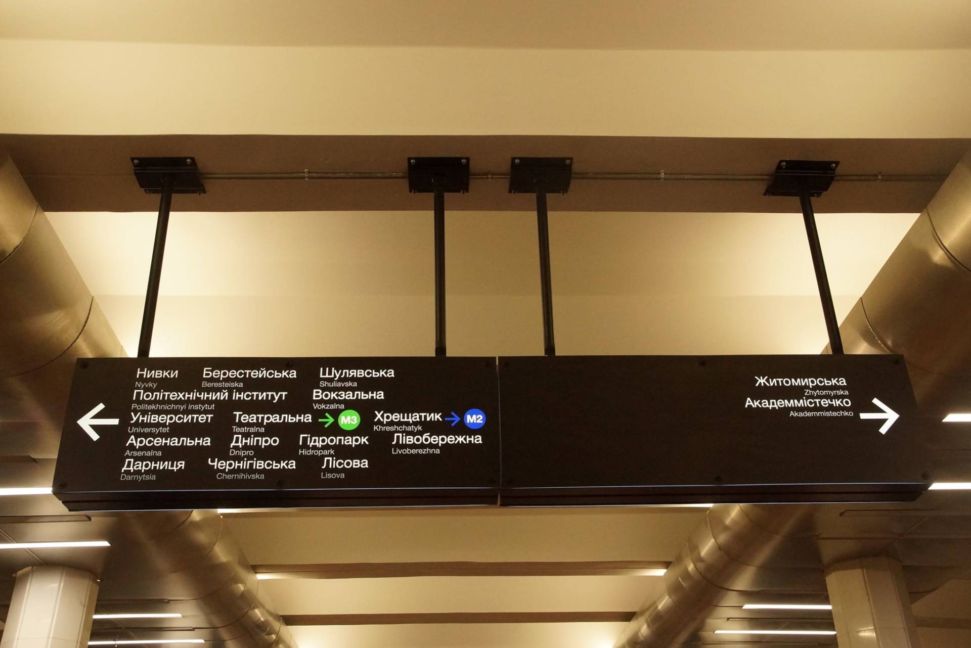 Навігація в самому переході на вході в метро зрозуміла, але на виході не ясно, де ліфт, оскільки навігаційна табличка захована за поворотом.