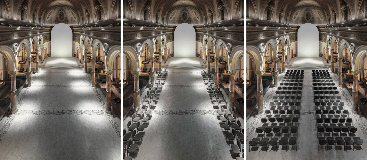 З боків холу розташовано меблі, які є фундаментом дизайну в соборі, незалежно від події всередині.