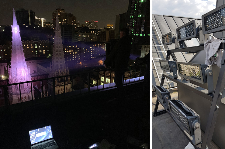 Обладнання – «з екстремально вузькою двоградусною оптикою» – розробила компанія Philips Color Kinetics, яка працювала з такими об’єктами, як той же Емпайр-Стейт-Білдінг, Собор Паризької Богоматері, Ейфелева вежа, Лондонське око тощо.