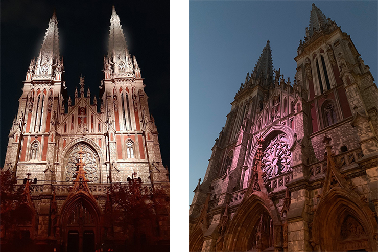На вулиці Великій Васильківській встановили нічне освітлення для костелу Святого Миколая, повідомляє компанія Expolight.