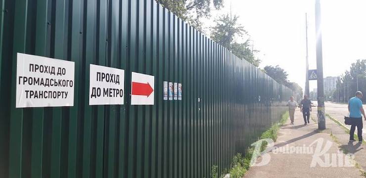 27 липня площу перед метро «Лісова» обгородили зеленим парканом через перенесення мереж.