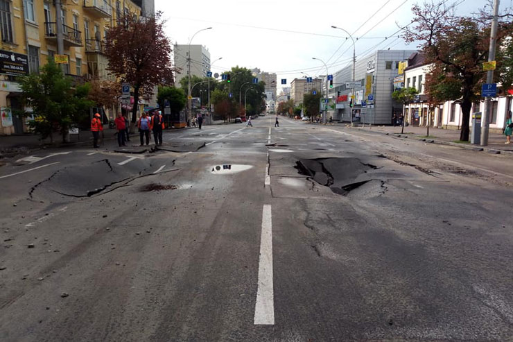 Тоді після зливи утворилися декілька ям поруч з головним офісом «Укравтодору». Втім, їх залатали менш ніж за добу.