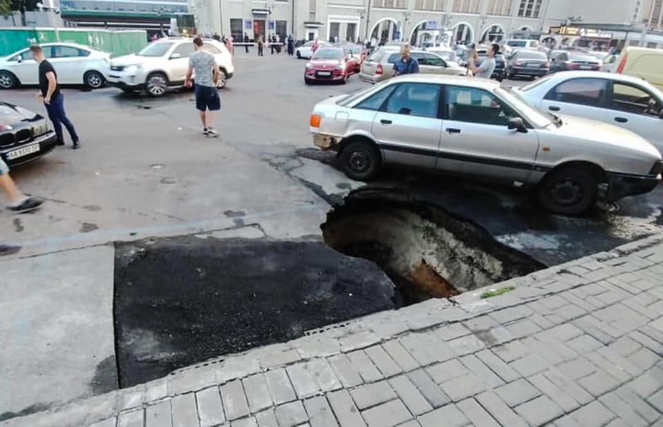 На дорозі біля Центрального залізничного вокзалу Києва утворилася глибока яма. Світлинами поділилася мешканка Києва Анжеліка Заїка.