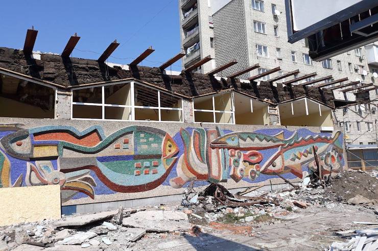 Знесена раніше мозаїка «Рибки». Фото з Facebook-сторінки Юрія Рудого