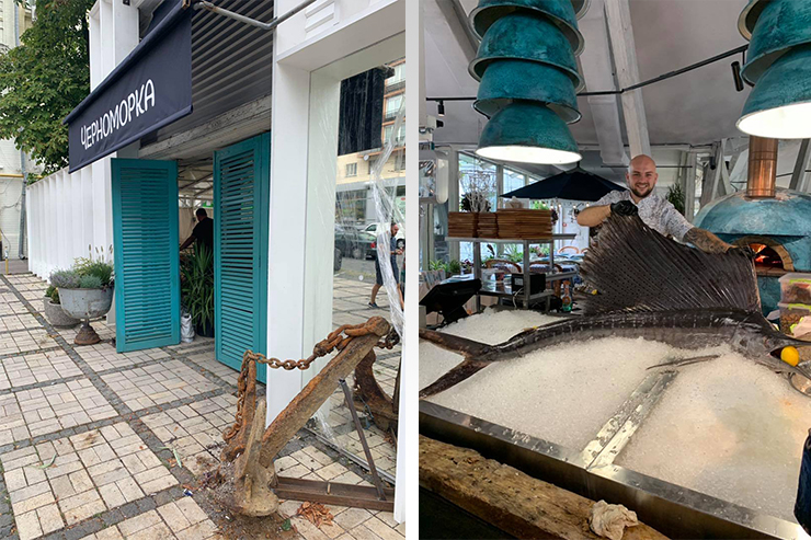 Як і інші заклади мережі, «Черноморка» на Великій Васильківській працюватиме в режимі й ресторану, й магазину. Тут подають мідії з різними соусами, рибні брускети, форшмак, супи з морепродуктами, устриці від 17 гривень тощо.