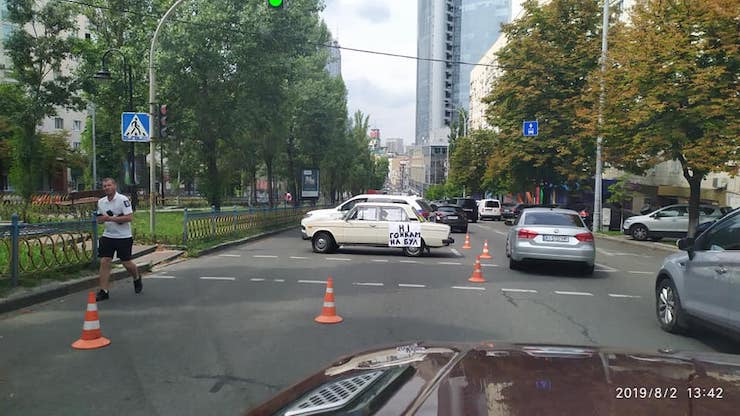 Автомобіль «Жигулі» перекрив бульвар Лесі Українки на знак протесту проти шуму (фото)