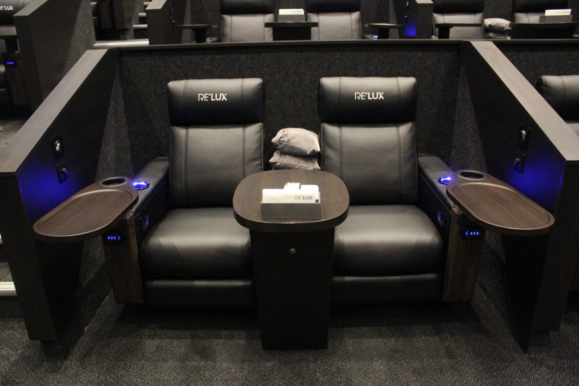 VIP-місця залу Cinetech+ та всі у RE’LUX оснащені однаково: трьома режимами регулювання сидінь, вбудованими в них охолоджувачами напоїв та можливістю замовляти закуски, які під час перегляду приноситиме офіціант. Воду та ігристе тут можна куштувати безкоштовно.