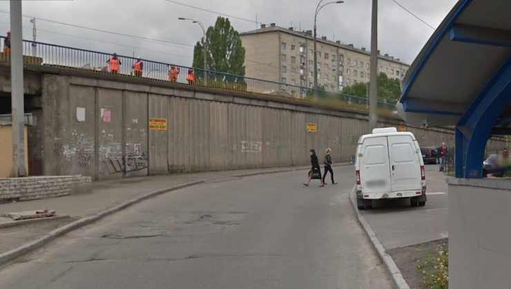 Для перетину бульвару Гавела під мостом для пішоходів передбачено лише підземні переходи. У режимі перегляду вулиць Google Maps можна побачити, що пішоходи систематично переходили тут вулицю згори.