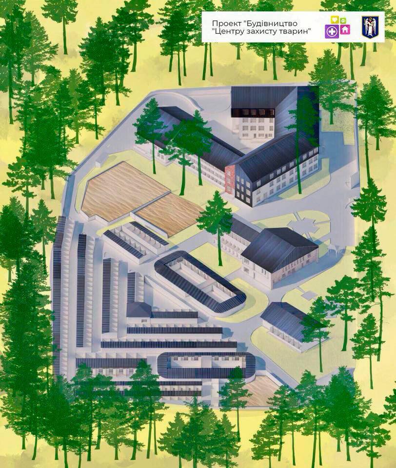 У центрі розташують ветеринарну клініку з сучасним діагностичним обладнанням, інфекційними блоками та терапевтичною зоною для тварин-спинальників, притулок для собак та котів, а також готель для тварин на час від’їзду їхніх власників.