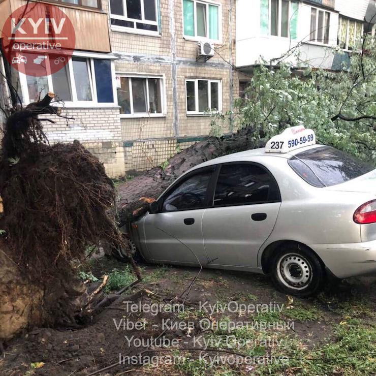 Водій таксі «Шансон» припаркувася на газоні, й на автомобіль впало дерево, як припускає Київ Оперативний, в якості покарання від природи.