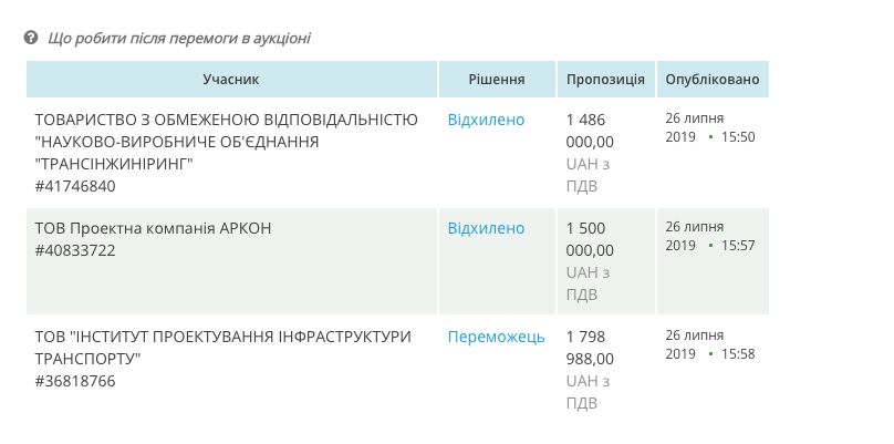 Розроблятиме проєкт харківське ТОВ «Інститут Проєктування Інфраструктури Транспорту». Його пропозиція становила 1,8 мільйона гривень.