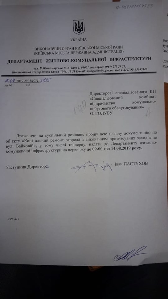Громадськість розкритикувала тендер, через що Департамент житлово-комунальної інфраструктури попросив замовника робіт надати на перевірку тендерну документацію. Про це повідомляє киянин Роман Ратушний.