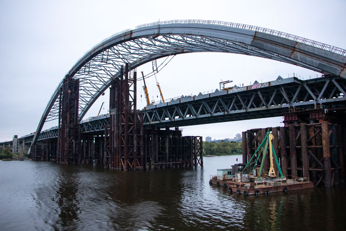 З арок Подільсько-Воскресенського моста прибирають тимчасові опори. Про це повідомляє «Информатор».