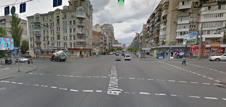 Перехрестя Саксаганського і Льва Толстого, Google Street View