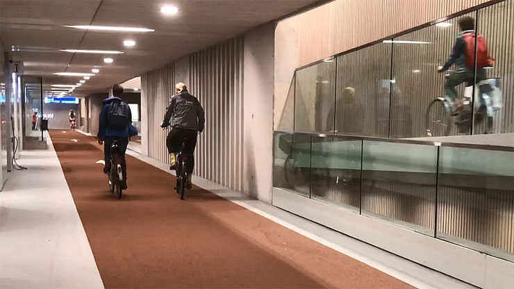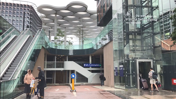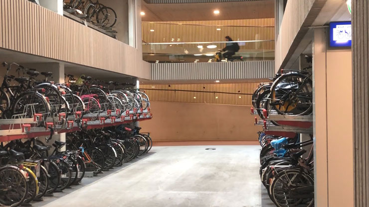 Новий паркінг – це триповерхова будівля, якою можна вільно пересуватись на велосипеді – тож немає потреби везти велосипед пішки, поки шукаєте вільне місце. На -1 поверсі зазвичай паркуються ті, хто потім пересаджуються на поїзд, на другому поверсі – містяни, які мають справи неподалік вокзалу, а паркомісця на першому поверсі зарезервовані для тих, хто має довгострокові абонементи. Перший поверх можна також використовувати просто як велопроїзд.