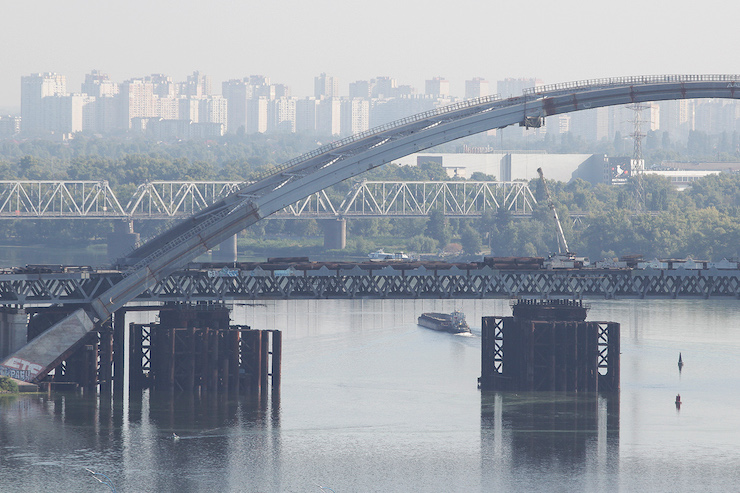 Цього року на мосту зведуть естакаду від дамби Русанівських садів до порталу метрополітену, де виходитиме гілка метро з Троєщини. На мосту облаштують шість смуг та дві колії метро. Довжина мосту становить понад 10 кілометрів.