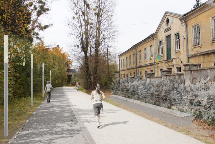 Парк. Це єдина ділянка маршруту, де зелена зона прилягатиме до пішохідної алеї з обох боків.  Рух нею перекриють обмежувальними стовпчиками. Пішоходи та велосипедисти рухатимуться однією доріжкою.