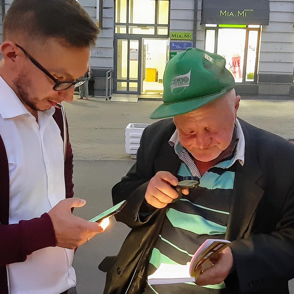Того ж дня волонтери почали роздавати їх підопічним бездомним — зокрема, на Контрактовій площі. Там одним із перших свій примірник отримав 52-річний киянин Ігор, який живе на вулиці вже п’ятий рік, маючи при цьому інвалідність.