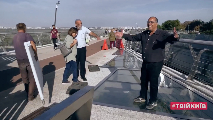 Увечері 16 вересня на велопішохідному мосту над Володимирським узвозом прибрали огородження навколо ділянки зі скляною підлогою. Про це повідомив мер Києва Віталій Кличко.