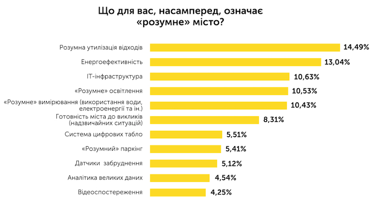 Згідно з опитуванням, найчастіше «розумне місто» асоціюють із утилізацією відходів і енергоефективністю.