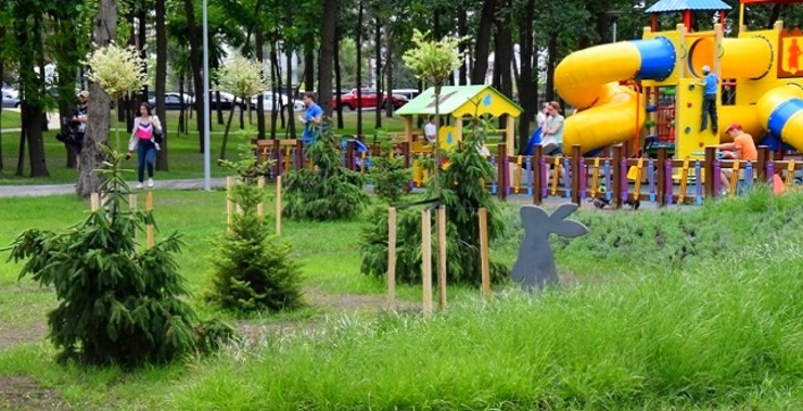У Парку культури та відпочинку «Перемога» встановили фігуру ведмедя, каркас якого виготовленого з дроту і штучного газону. Цей арт-об’єкт – результат роботи Комунального підприємства по утриманню зелених насаджень Дніпровського району столиці. Комунальники закликають робити селфі з «Ведмежатком».
