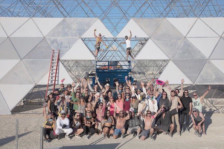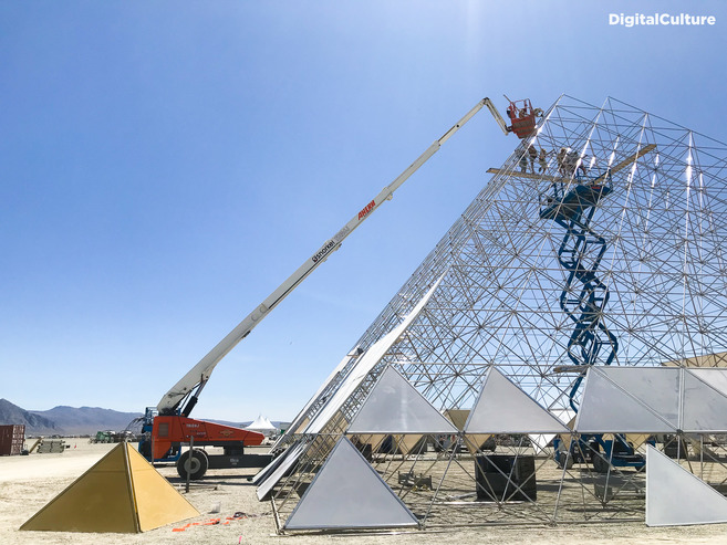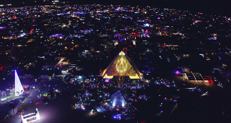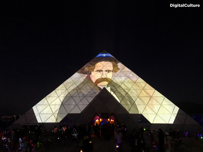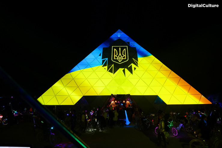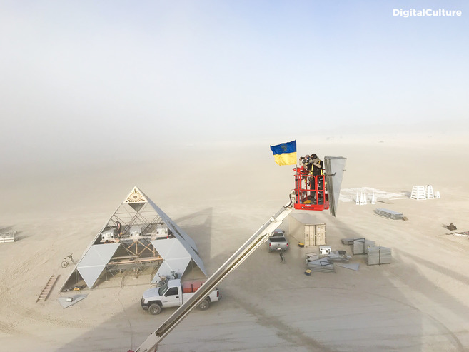 На величезну піраміду посеред пустелі на Burning Man проектували роботи художників VJ Yarkus, Євгена Лапченко, Слави Балбека, Юрія Мірона, Астіана Рея, Валерія Коршунова, Олександри Степаненко, VJ Alx, Слави Крижановського, Назара Михалко, дизайнера banda.agency, проекту PlastikWood, RockStar тощо.