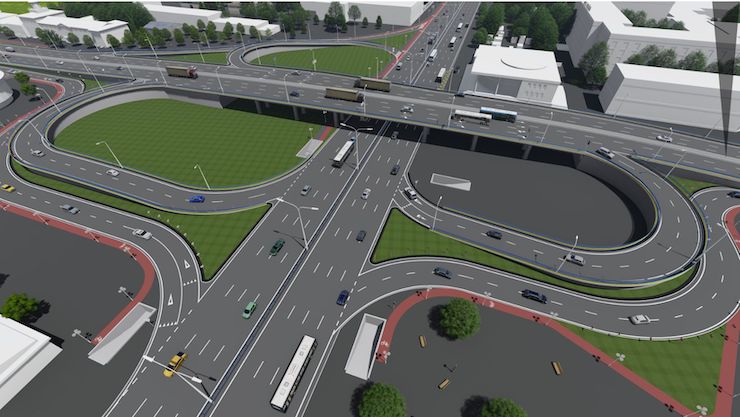 Мер столиці додав, що будівництво фактично нового шляхопроводу триває, незважаючи на невелику паузу, що була. Там продовжать встановлювати металеві конструкції – основу нового мосту. Віталій Кличко зазначив, що проект реконструкції Шулявського шляхопроводу в Києві передбачає будівництво розв’язки у формі неповного листка конюшини – моста з трьома з’їздами.