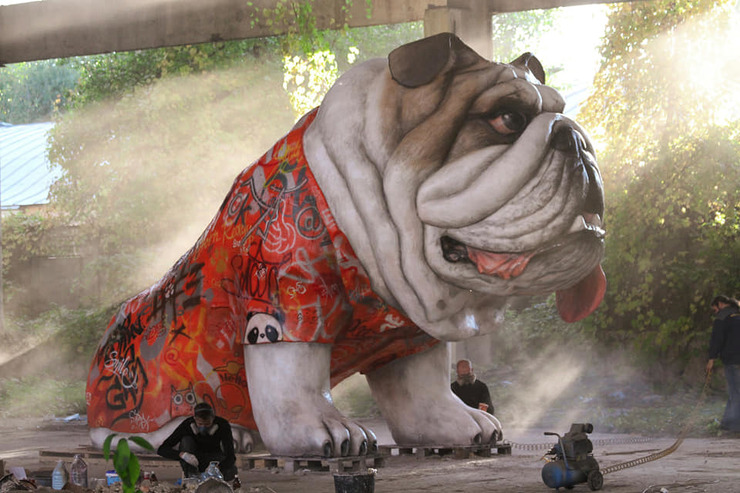 Біля метро «Почайна» встановили п’ятиметрову скульптуру бульдога