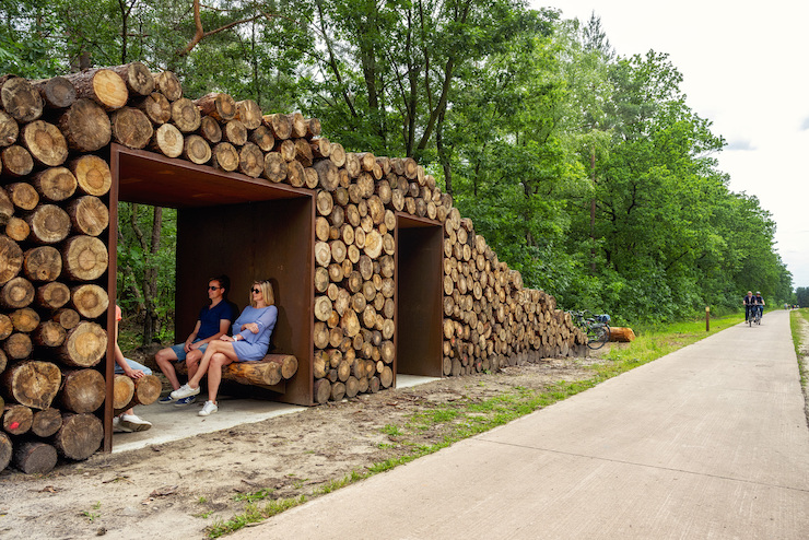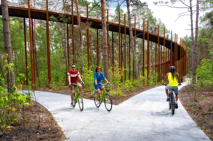 Та головний акцент роблять на велосипедній інфраструктурі, яка м’яко вписується у природний ландшафт. Проєкт Cycling through the Trees передбачає велосипедну прогулянку поміж кронами сосен.