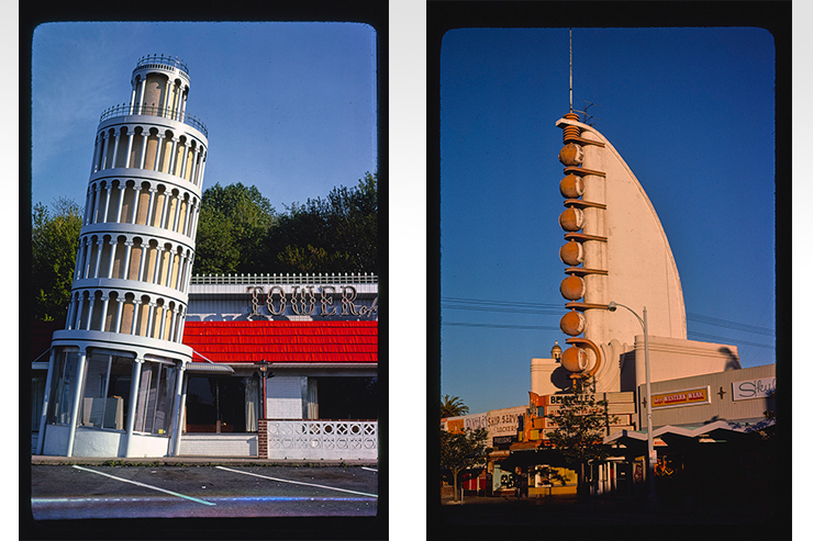 Ліворуч – Tower of Pizza, Піцанська башта. Фото: John Margolies, Library of Congress Prints and Photographs Division