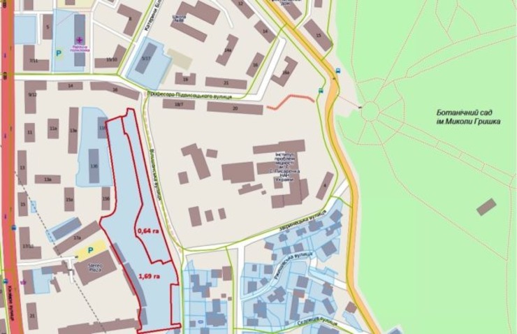 Дві ділянки розміром у 0,64 га і 1,69 га Київрада передала в оренду для будівництва житлового комплексу ТОВ «Український фонд розвитку регіонів» і ТОВ «Інноваційна будівельна компанія» ще у 2006 році. Але у 2012 році Господарським судом міста Києва договори оренди були визнані недійсними. Згодом (у 2013) Київрада надала цій території статус скверу.
