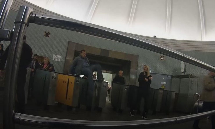 Дмитро спробував перескочити через турнікети, маючи смартфон із записаним QR-кодом і попросив працівників метрополітену викликати поліцію, щоб скласти протокол. Але працівники відмовляються вживати будь-яких заходів з коментарем, що такі випадки вже траплялися, і вони не мають підстав діяти.
