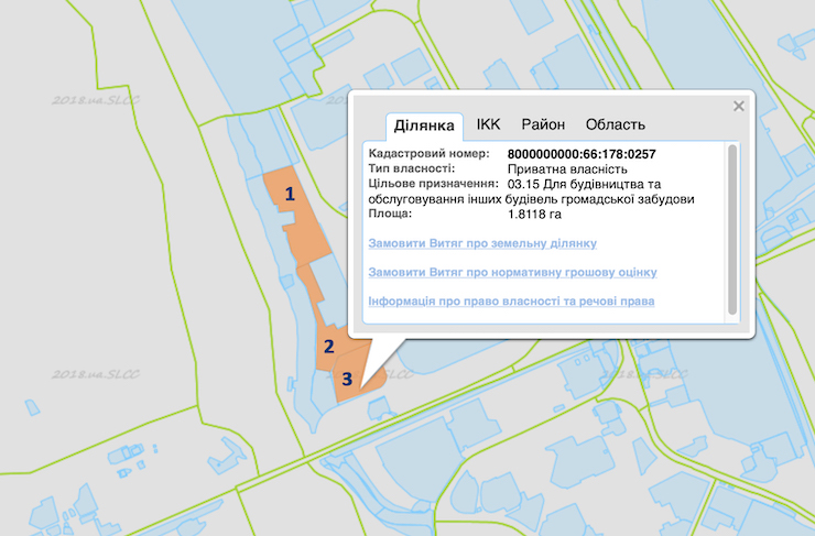 Ділянки на кадастровій карті. Виділення: Хмарочос