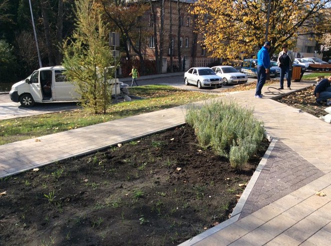 Тут проклали нові доріжки, встановили лавки, смітники, пандуси і освітлення, висадили зелень. При цьому рослини зрошуються системою штучного поливу.