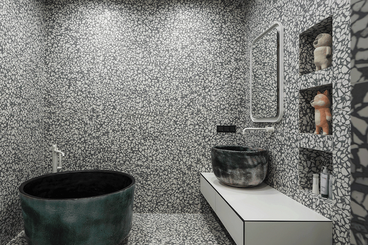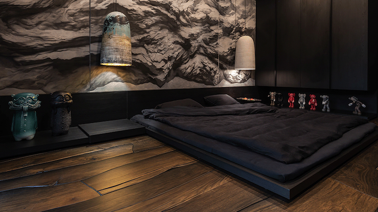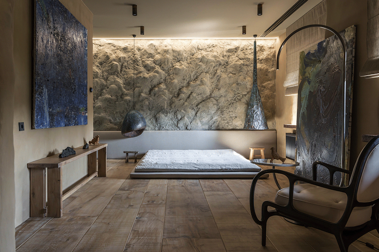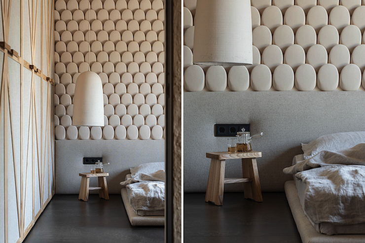 В узголів’ї ліжка-татамі – алюзія на брилу глиняної породи.