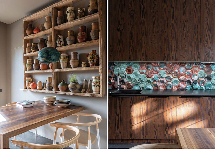 Дім має дві кухні. У мінімалістичній відкритій кухні – гуцульський дерев’яний стіл 1935 року, придбаний на барахолці.