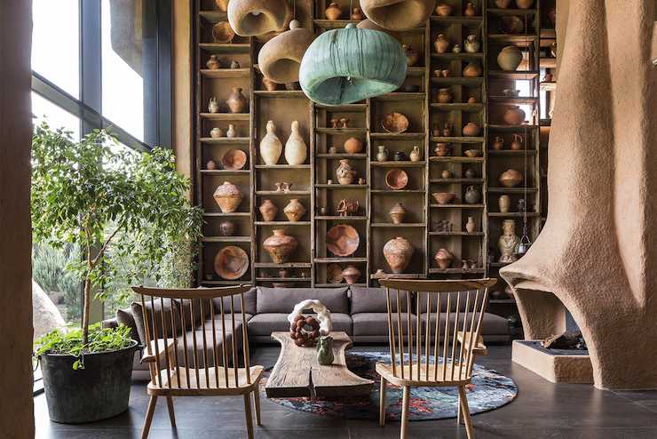 Одну зі стін у вітальні оздоблено деревом: «Ми просто розібрали 11 старих покинутих хатинок». Тут Махно розмістив свою колекцію української кераміки, яку почав збирати ще у дитинстві. Зокрема, є глиняні вироби часів Трипілля, V-II тисячоліття до нашої ери.
