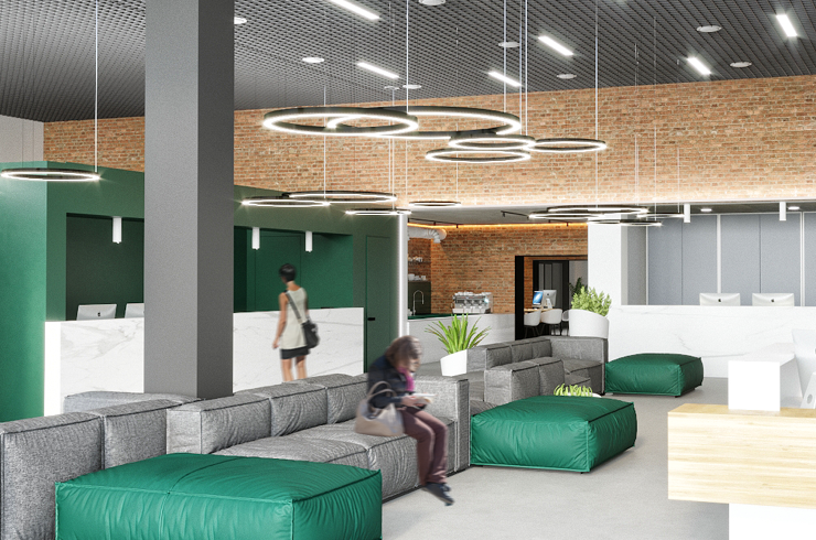 Особливістю оновленої будівлі стала кав’ярня та лекторій на даху з видом на парк, а також скляний передній фасад. Перед соціальним офісом також облаштують новий громадський простір з фонтаном.