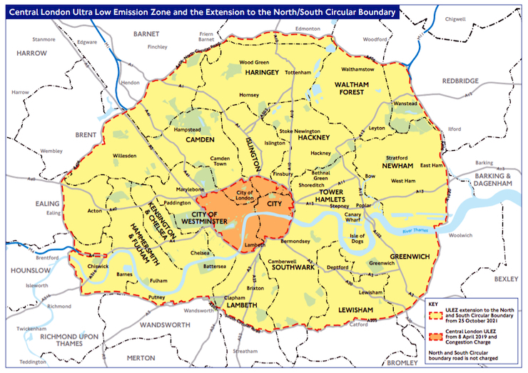 У квітні мер Лондона Садік Хан запровадив Зону наднизьких викидів (ULEZ), яка передбачала суворіші обмеження порівняно з попередньою Зону низьких викидів (LEZ), котра функціонувала з 2017 року.