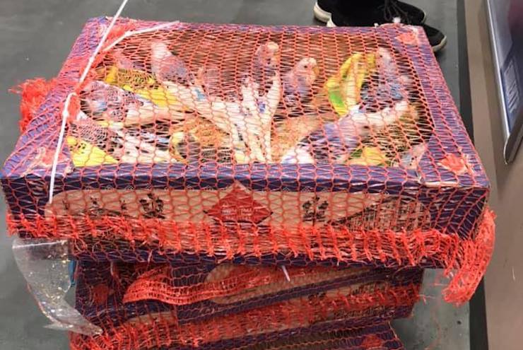 В мережу потрапили фотографії коробок, в яких транспортують хвилястих папужок до гіпермаркету «Епіцентр» у Києві.