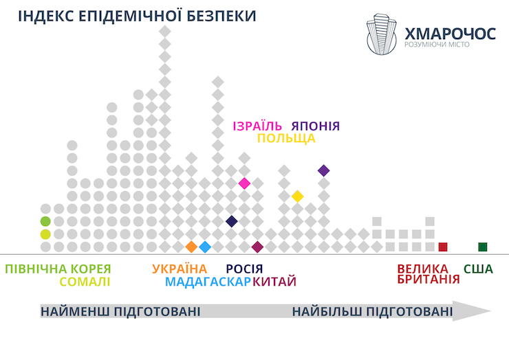 Місце України на шкалі готовності до епідемій та довільно обрані країни для порівняння