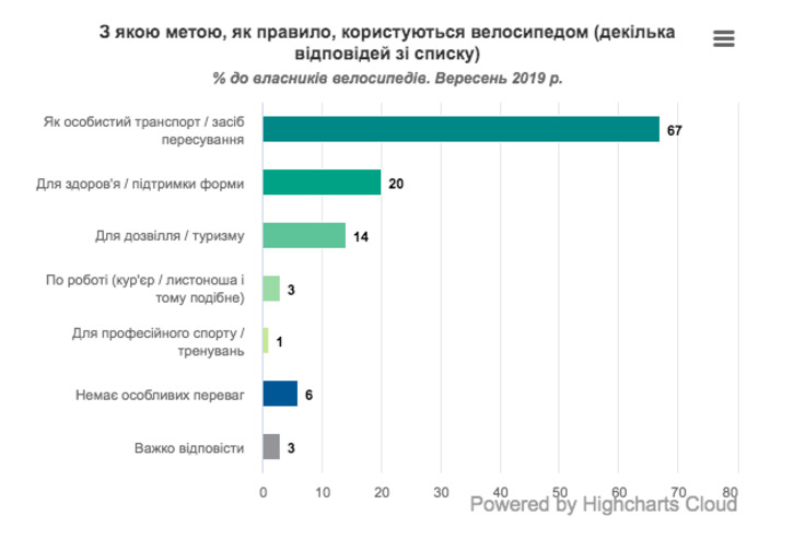 Компанія Research & Branding Group у вересні 2019 року зробила соціологічне опитування про ставлення українців до велосипедів та велосипедної інфраструктури.