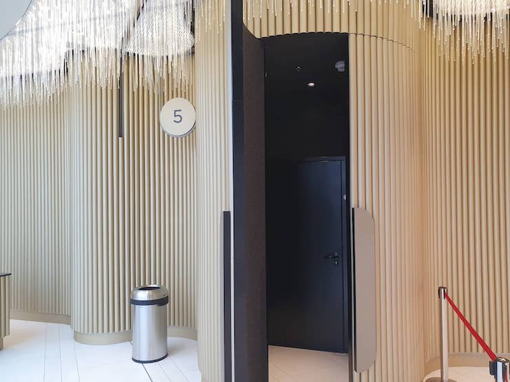 Кінотеатр містить п’ять залів «класу люкс» із кріслами-реклайнерами. Хол кінотеатру проєктувало бюро Mono architects.