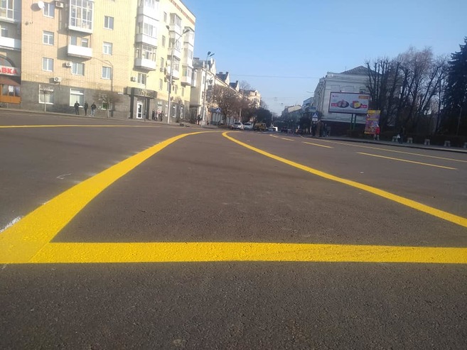 У Житомирі почали тестувати пропозиції з реконструкції центрального майдану міста. У зв’язку з цим на площі нанесли тимчасову розмітку.