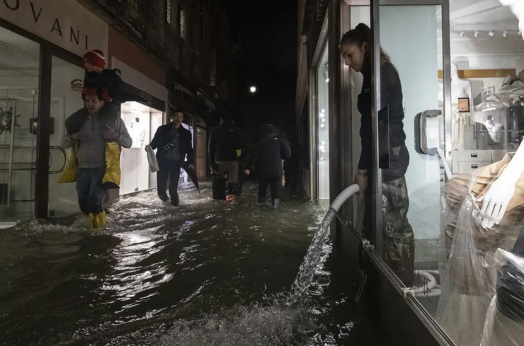 У Венеції повінь досягла рекордного рівня, пише The Guardian. Вода піднялася на 187 см, затопивши понад 85% міста. Востаннє таке зафіксували у 1966 році, коли водя сягнула позначки 198 см. Дві людини загинуло, в одному з випадків через удар електричним струмом у затопленому домі. Кілька суден міського водного транспорту винесло на набережну. Через коротке замикання сталося кілька пожеж.