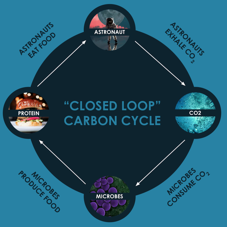 Його ідея полягала в тому, аби використовувати діоксид вуглецю, який видихають космонавти, для «харчування» мікроорганізмів, які вироблятимуть білок.