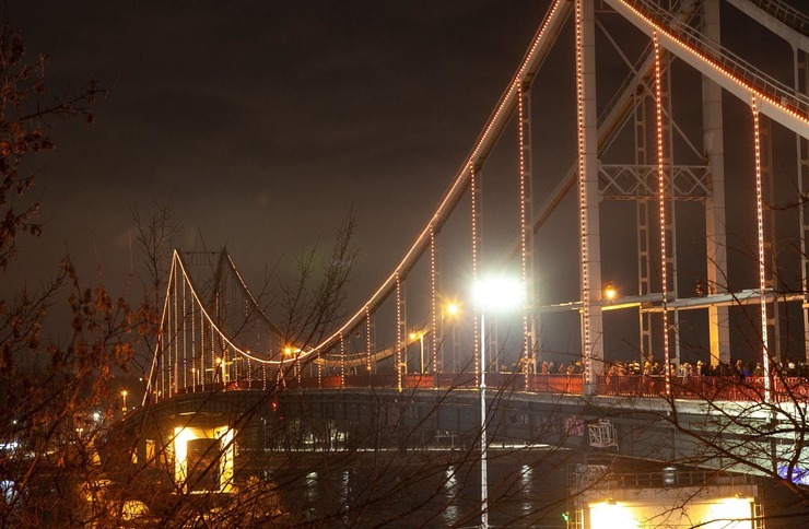 У Києві підсвітили Парковий міст, щоб привернути увагу до проблем домашнього насильства