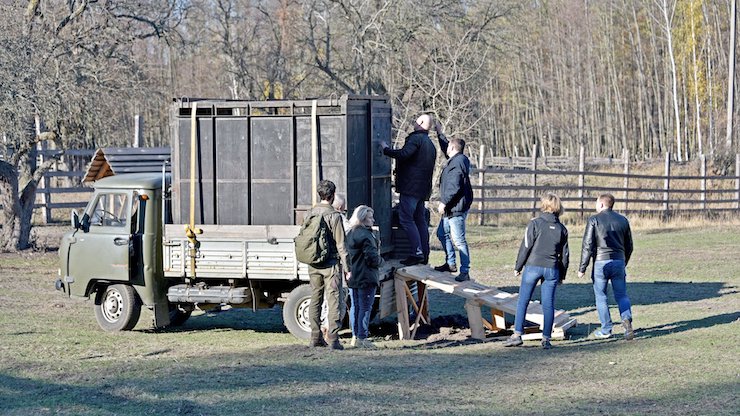 Самець на ім’я Мускат народився в зоопарку Києва. Протягом року він житиме в адаптаційному вольєрі площею два гектари разом з іншими молодими зубрами. Потім його випустять у ліс.